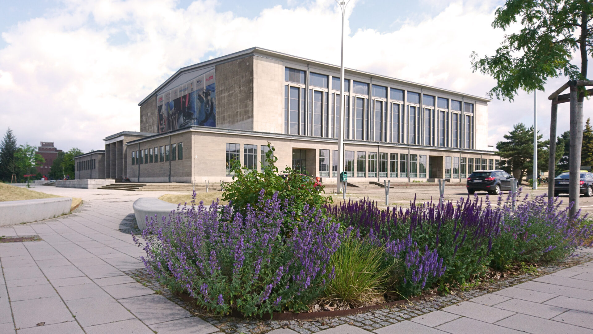 Der Vorplatz des Sportforums wird geprägt durch die denkmalgeschützte Sporthalle aus dem Jahr 1956. Die Sporthalle wird sowohl für Sportwettkämpfe als auch für sonstige Veranstaltungen genutzt. Südlich der Sporthalle wurde das ehemalige Kassenhaus zu einem Verwaltungsgebäude umgebaut, welches ebenfalls unter Denkmalschutz steht. Im Rahmen der Weiterentwicklung des Sportforums zu einem nachhaltigen nationalen Spitzensportzentrum wird der Vorplatz in mehreren Bauabschnitten umgebaut.