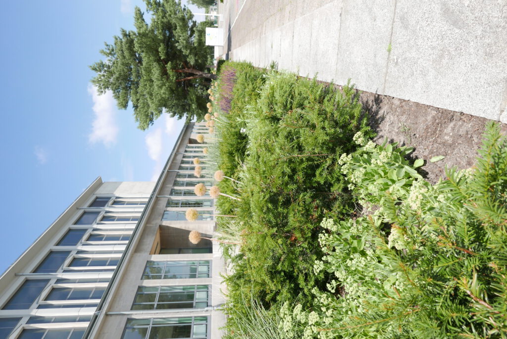 Im ersten Bauabschnitt, Fertigstellung 2015, wurde der Übergangsbereich zum Weißenseer Weg mit Schaffung von Grün- und Aufenthaltsbereichen und gleichzeitiger Adressbildung gestaltet.